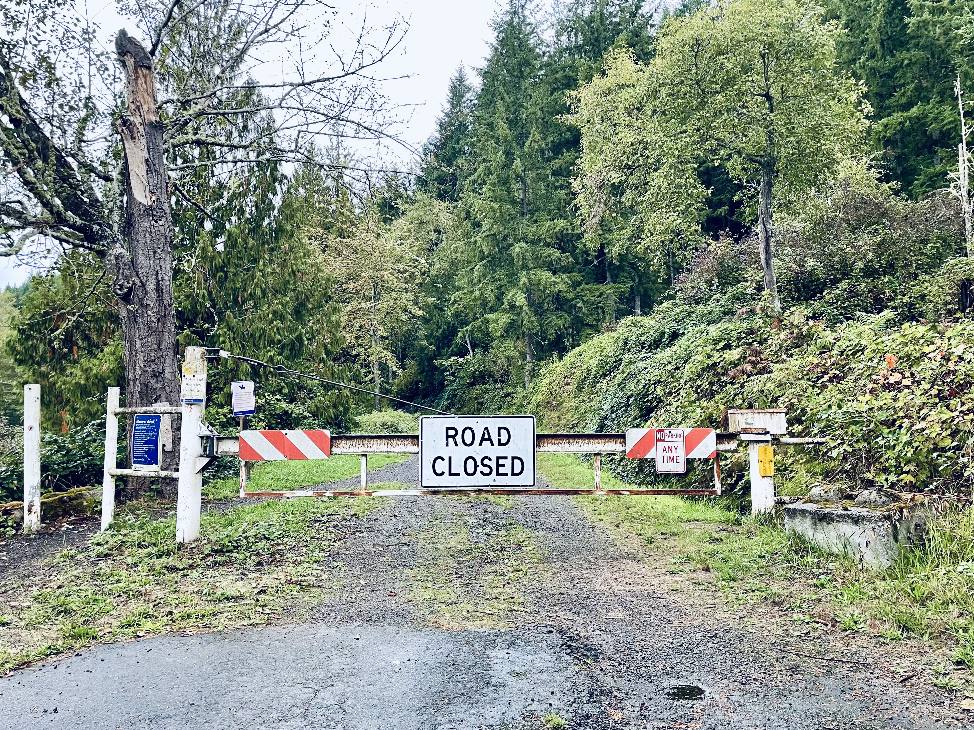 alex leigh | Here we are confronted not with a mere photograph but with a meditation on civilization’s aestheticized denial. The “ROAD CLOSED” gate stands in cold steel, asserting dominion over the gravel path that seeks communion with the evergreens beyond, a communion forever deferred. Nature waits in uncommodified authenticity, yet our gaze is arrested, compelled to reckon with the reality that access itself has become a curated transaction. The Pacific Northwest bursts in muted but unmistakable color, the deep greens of the evergreens contrasting with the pale, damp browns of the gravel and the soft, washed-out blue gray of the sky. Color does not soften the denial; it sharpens it. The gravel road, granular and inert, becomes a metaphor for the mediated passage we desire but cannot claim. The gate is a monument not merely to closure but to the systemic commodification of experience. We are denied not by geography but by society’s insistence that even longing must be fenced, catalogued, and controlled. In this image, the sublime of nature is refracted through the lens of prohibition, leaving the viewer to confront the existential irony that our access to the wild is never pure, only deferred, purchased, or denied. |